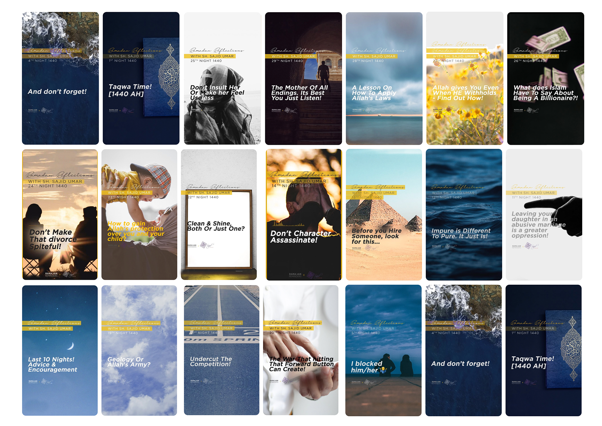 Our work on series is crafted with intentionality, impact, and emotional depth. Each series is designed with its own unique intro and outro, distinct branding, and effective use of elements to establish tone and identity. We incorporate curated footage to deepen the message, along with cinematic cuts and carefully timed nasheeds to build emotional momentum.